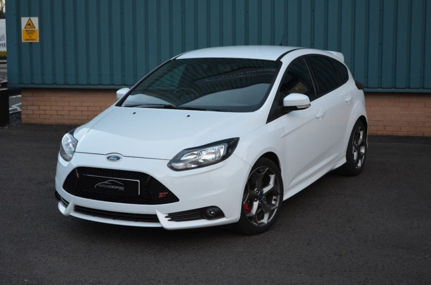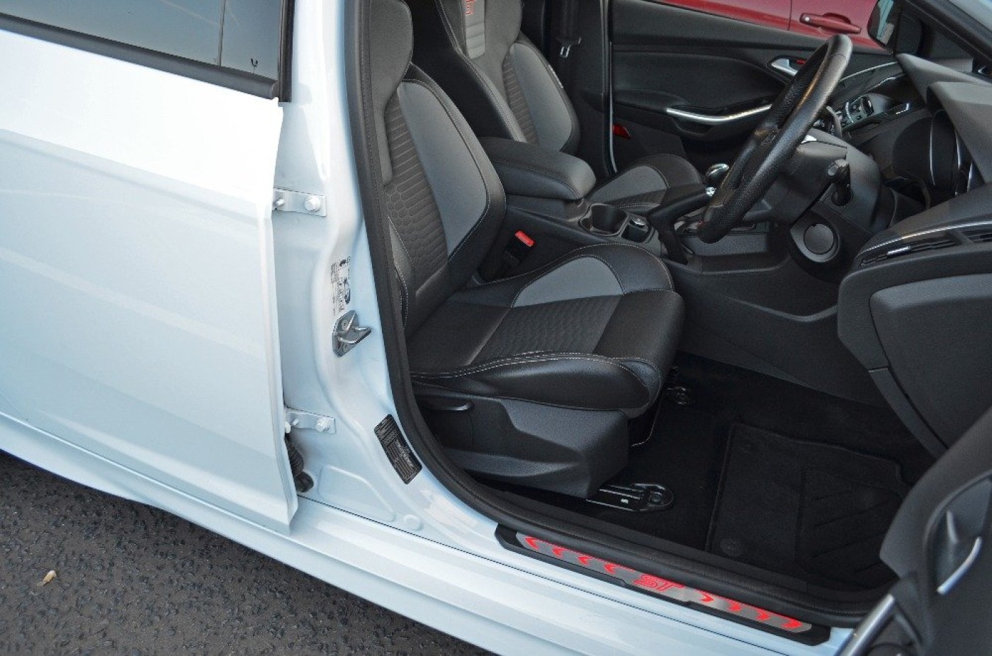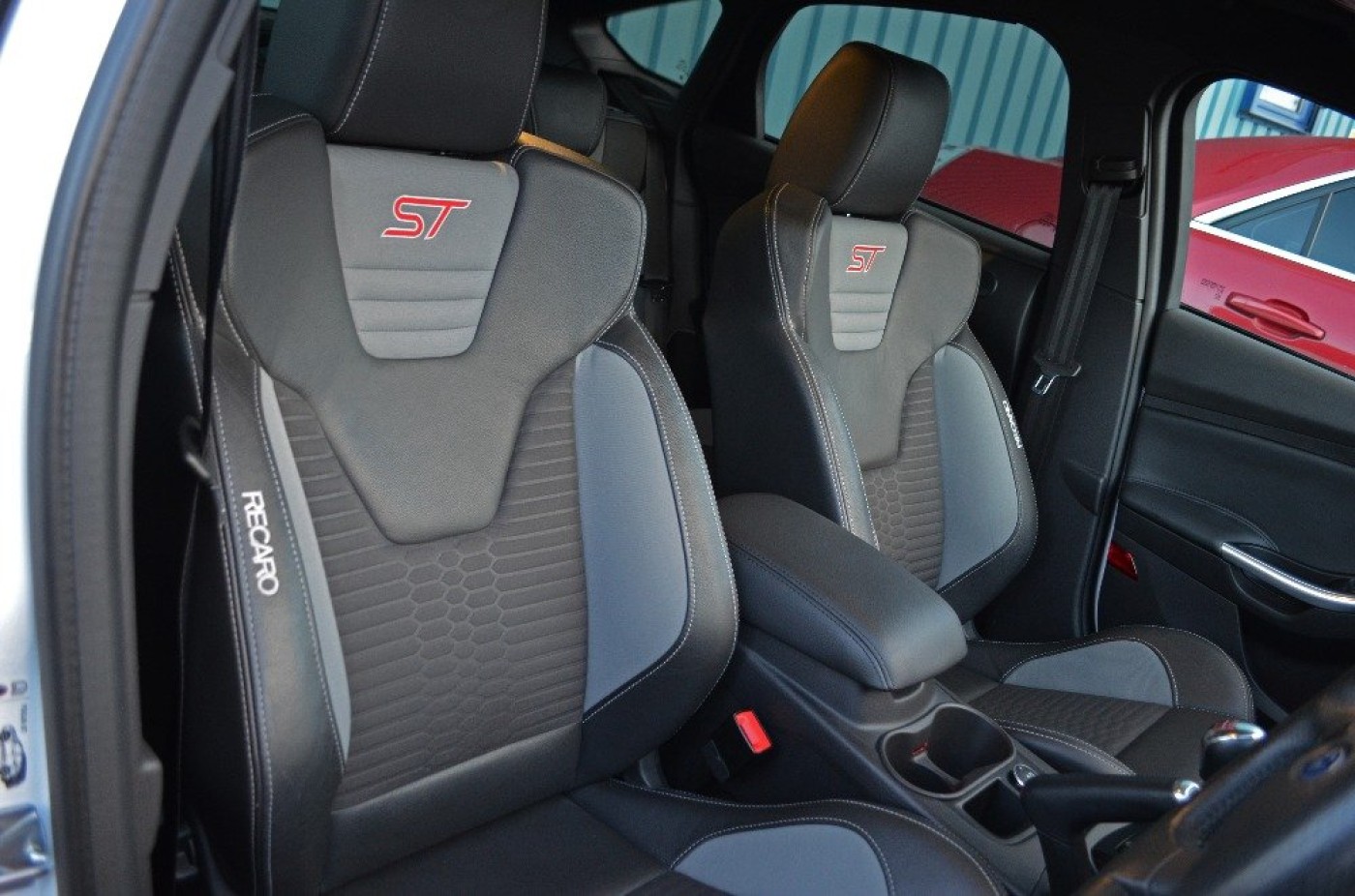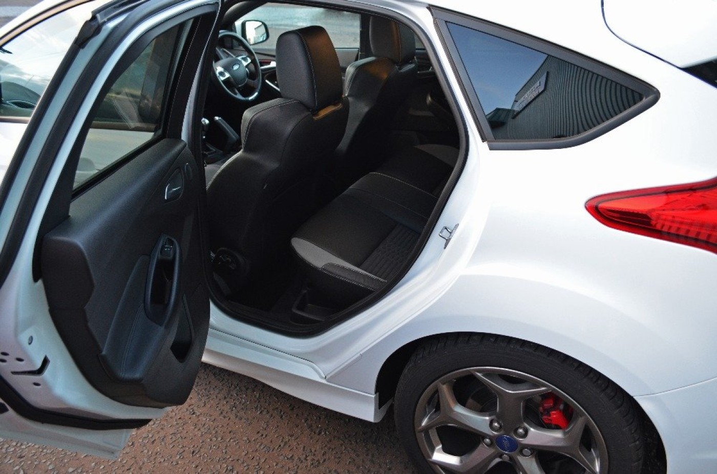 Upgrades - ST Style Pack, Frozen White Paint, Privacy Glass, Standard Features - Voice Control and Audible Text Messaging, Sony DAB Audio System, Air Conditioning - Dual-Zone Electronic Automatic Temperature Control (DEATC), Sony Audio System, 4.2TFT Display, Branded Integrated Control Panel, Ford SYNC - Includes Emergency Assistance, USB/AUX, Partial Leather Trimmed Seats, Bluetooth, Driver Information System, Automatic Wipers with Rain Sensor, Deflation Detection System (DDS), Quickclear Heated Windshield, Hill Start Assist, Thatcham Category 1 Perimeter and Volume - Sensing Alarm, 18in 5-Spoke ST Alloy Wheels (235/40 Tyres) with Locking Wheel Nuts, Electrically - Operated Front and Rear Windows, with One - Touch Lowering/Closing and Global Closing. 5 seats, White.