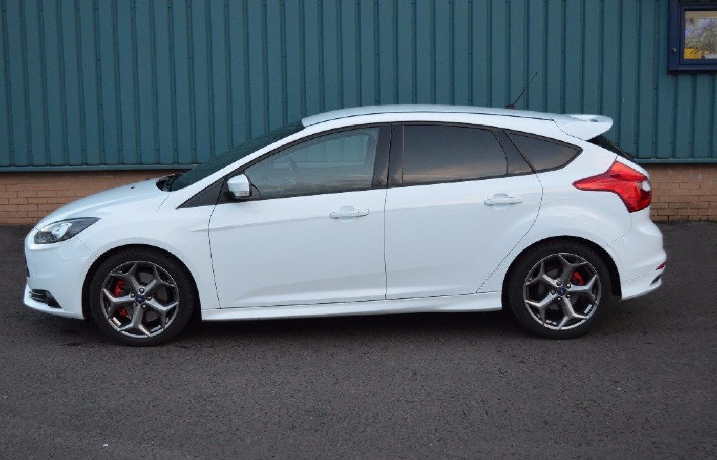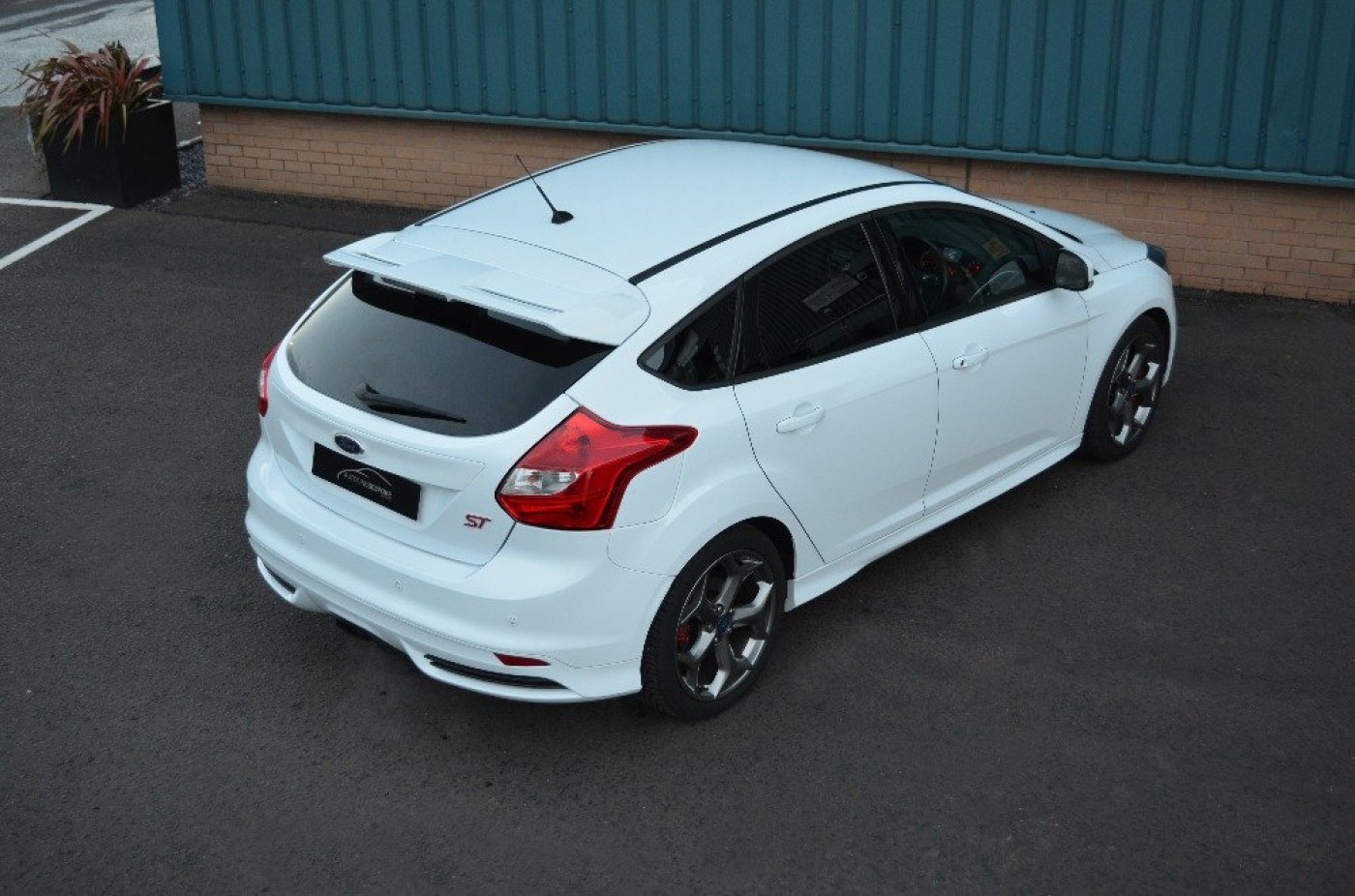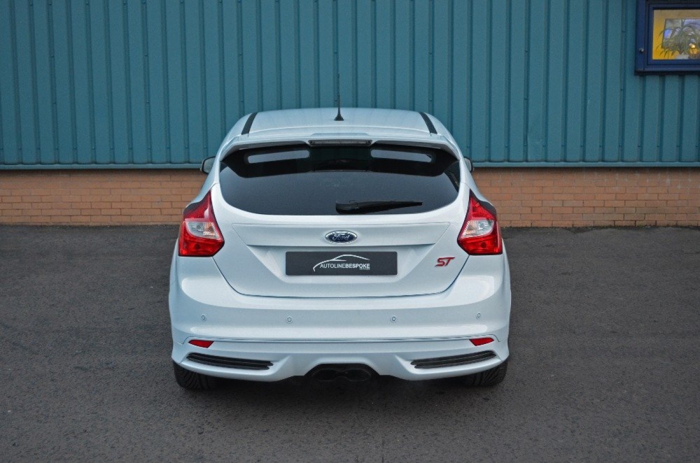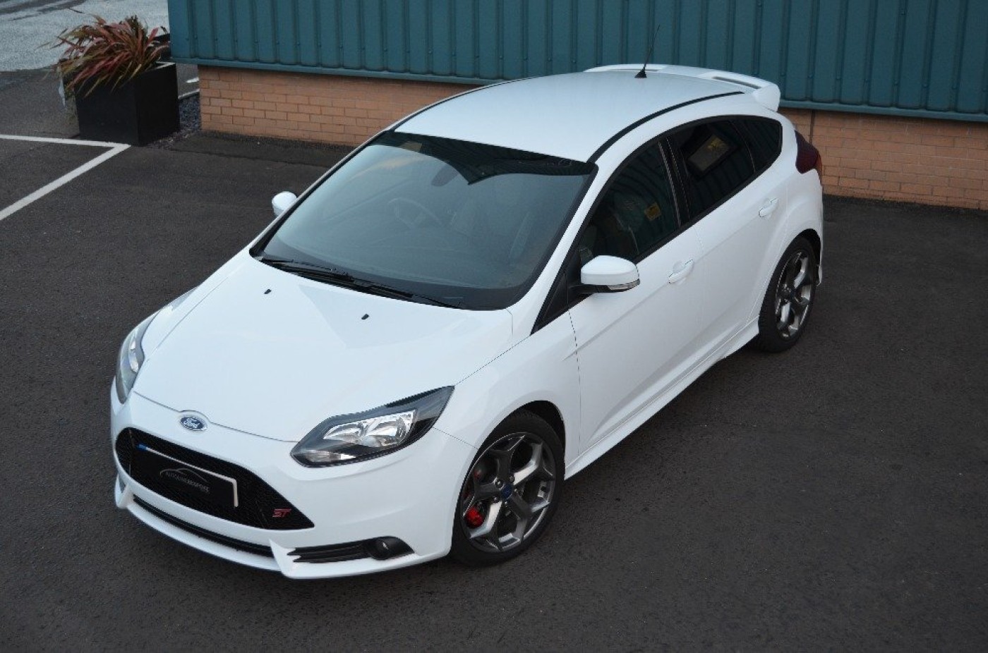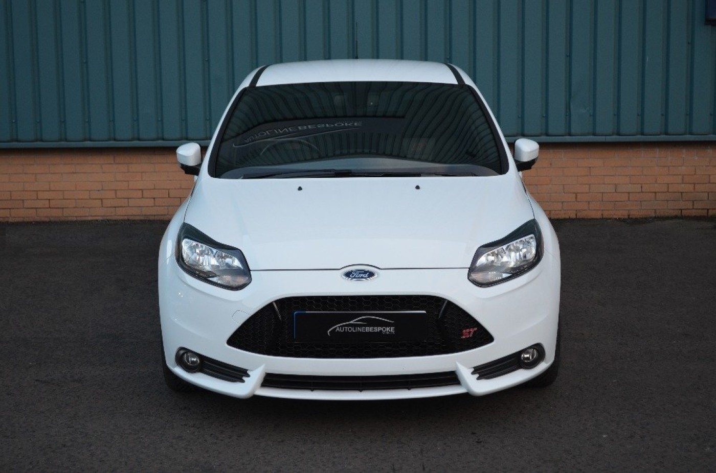 Upgrades - ST Style Pack, Frozen White Paint, Privacy Glass, Standard Features - Voice Control and Audible Text Messaging, Sony DAB Audio System, Air Conditioning - Dual-Zone Electronic Automatic Temperature Control (DEATC), Sony Audio System, 4.2TFT Display, Branded Integrated Control Panel, Ford SYNC - Includes Emergency Assistance, USB/AUX, Partial Leather Trimmed Seats, Bluetooth, Driver Information System, Automatic Wipers with Rain Sensor, Deflation Detection System (DDS), Quickclear Heated Windshield, Hill Start Assist, Thatcham Category 1 Perimeter and Volume - Sensing Alarm, 18in 5-Spoke ST Alloy Wheels (235/40 Tyres) with Locking Wheel Nuts, Electrically - Operated Front and Rear Windows, with One - Touch Lowering/Closing and Global Closing. 5 seats, White.