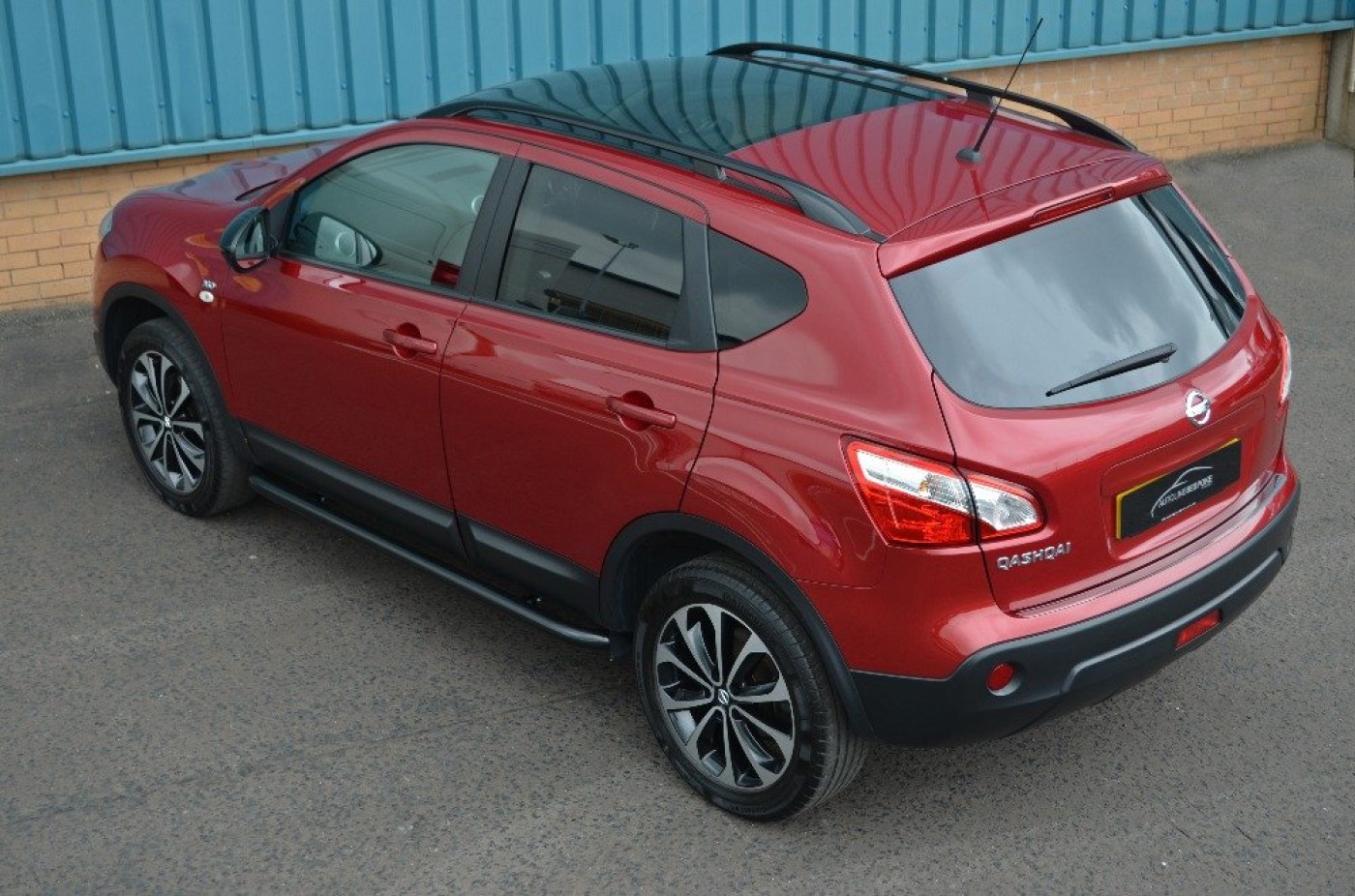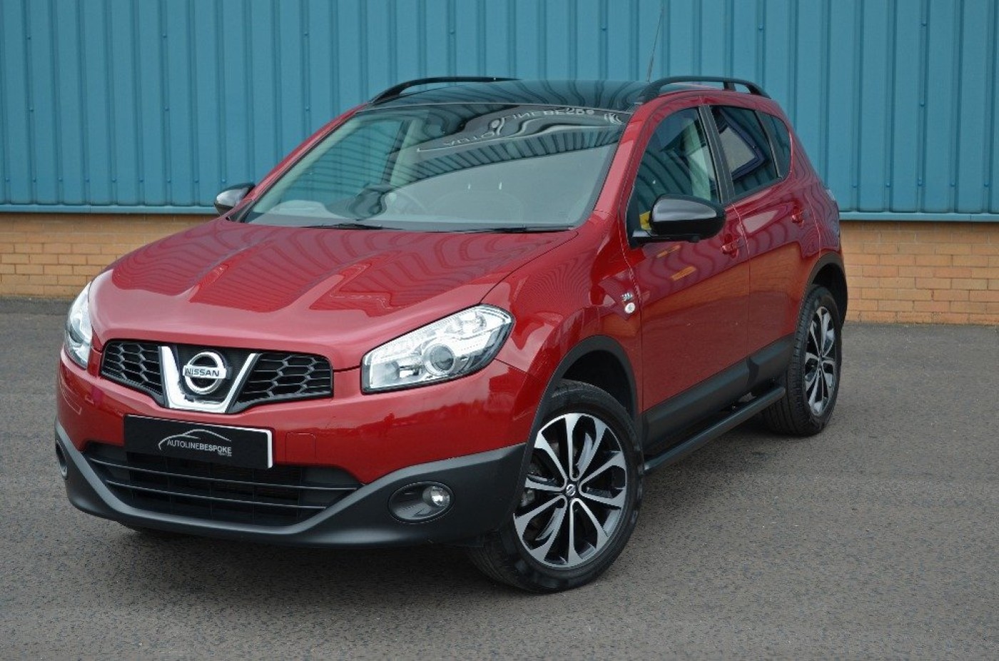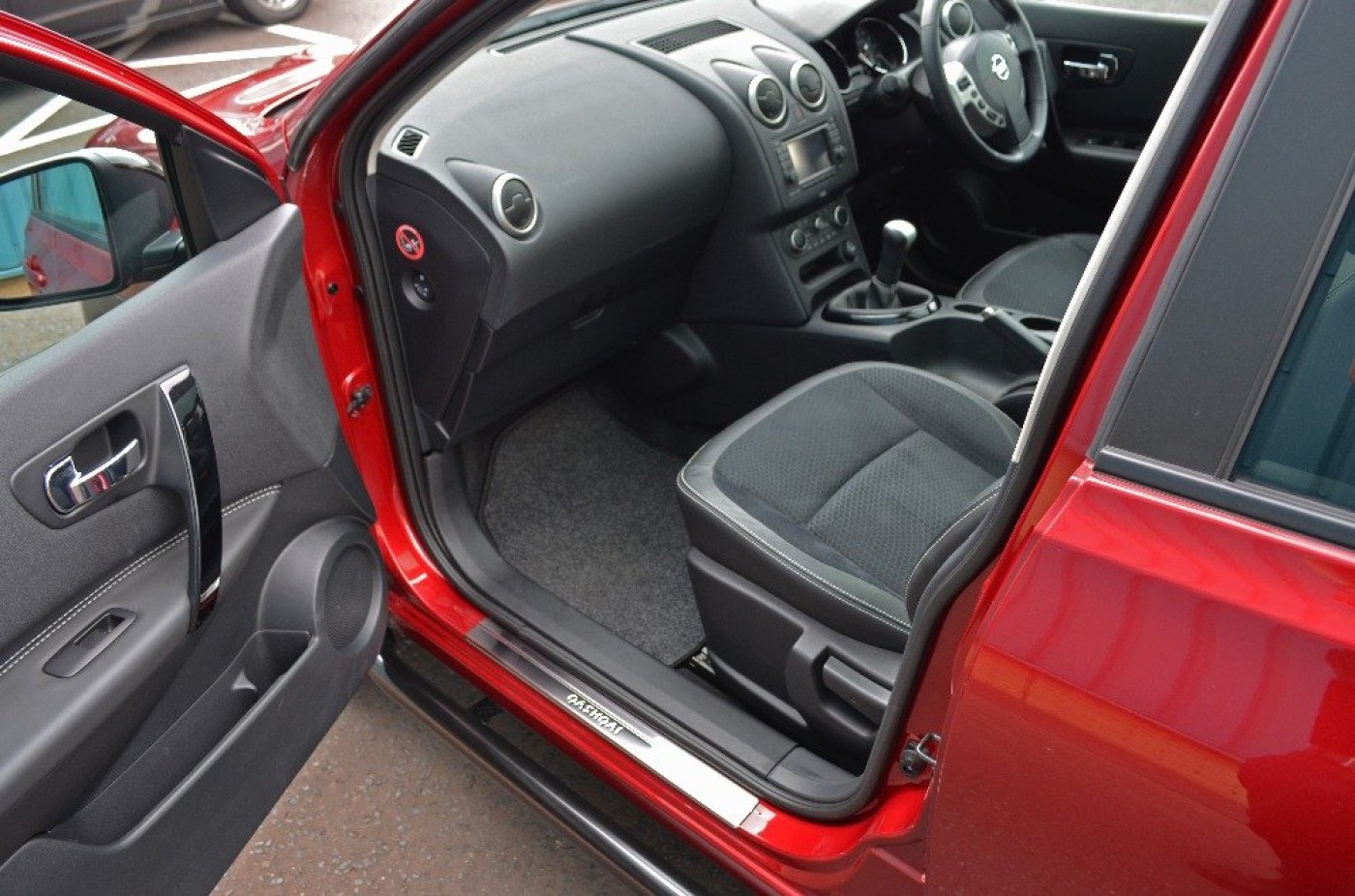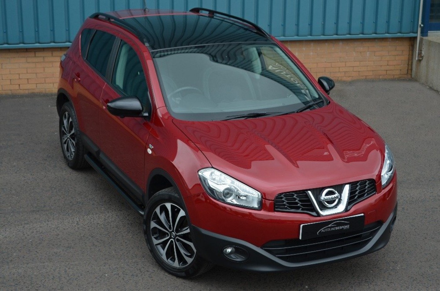 Upgrades - Metallic Paint, Standard Features - Nissan Connect, Panoramic Glass Roof, Cruise Control with Speed Limiter, Dual Zone Climate Control, Ultrasonic Rear Park System, Rear, Front and Passenger Side View Cameras, Nissan Around View Monitor, 18in (Onyx) Alloy Wheels, Bluetooth Integration, Front and Rear Power Windows, Partial Leather Seat Trim, Radio/CD Player with USB Input, Around, Rain-Sensing Wipers, Rear Privacy Glass, Ultrasonic Alarm System. 5 seats, Red.