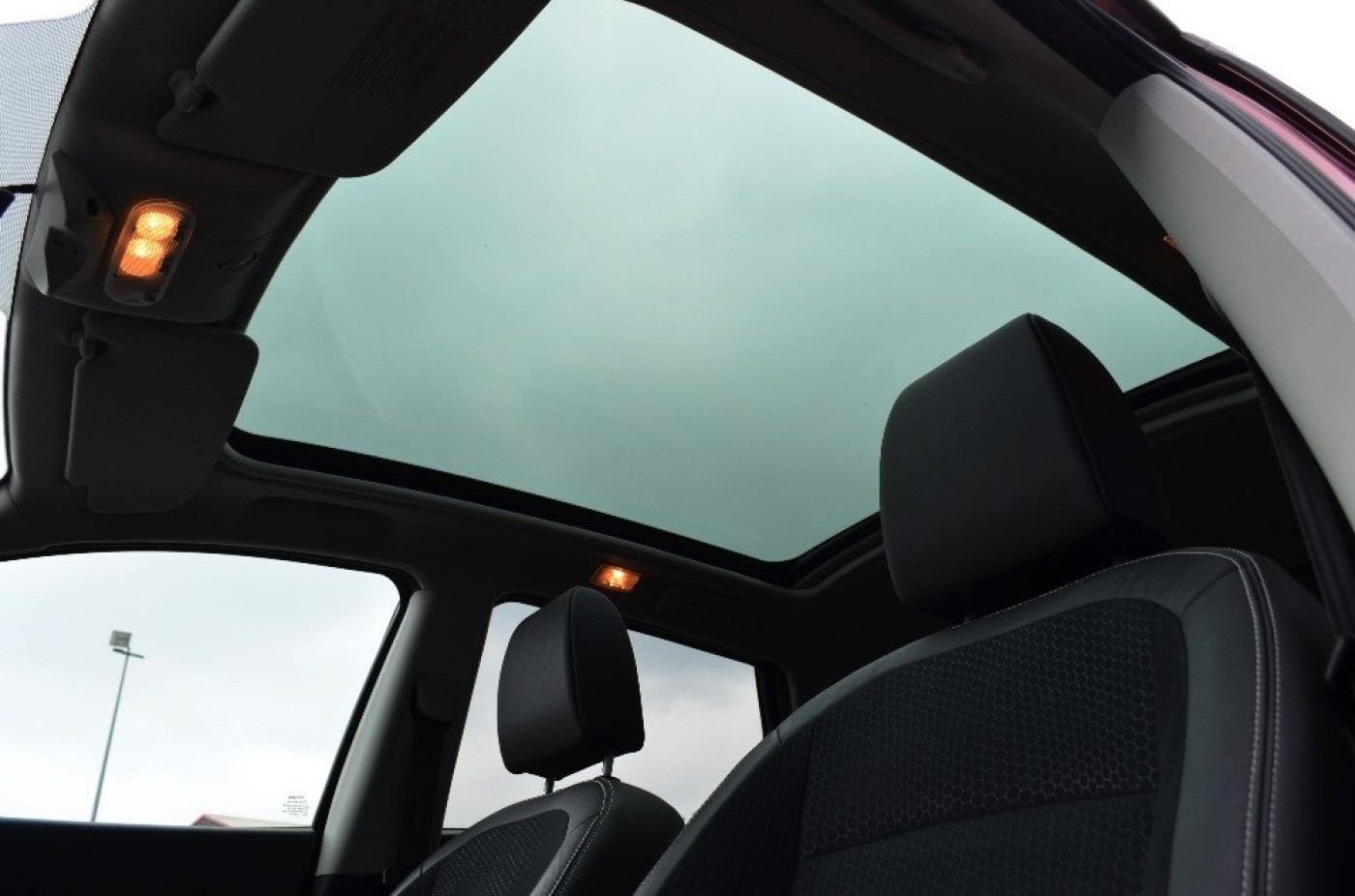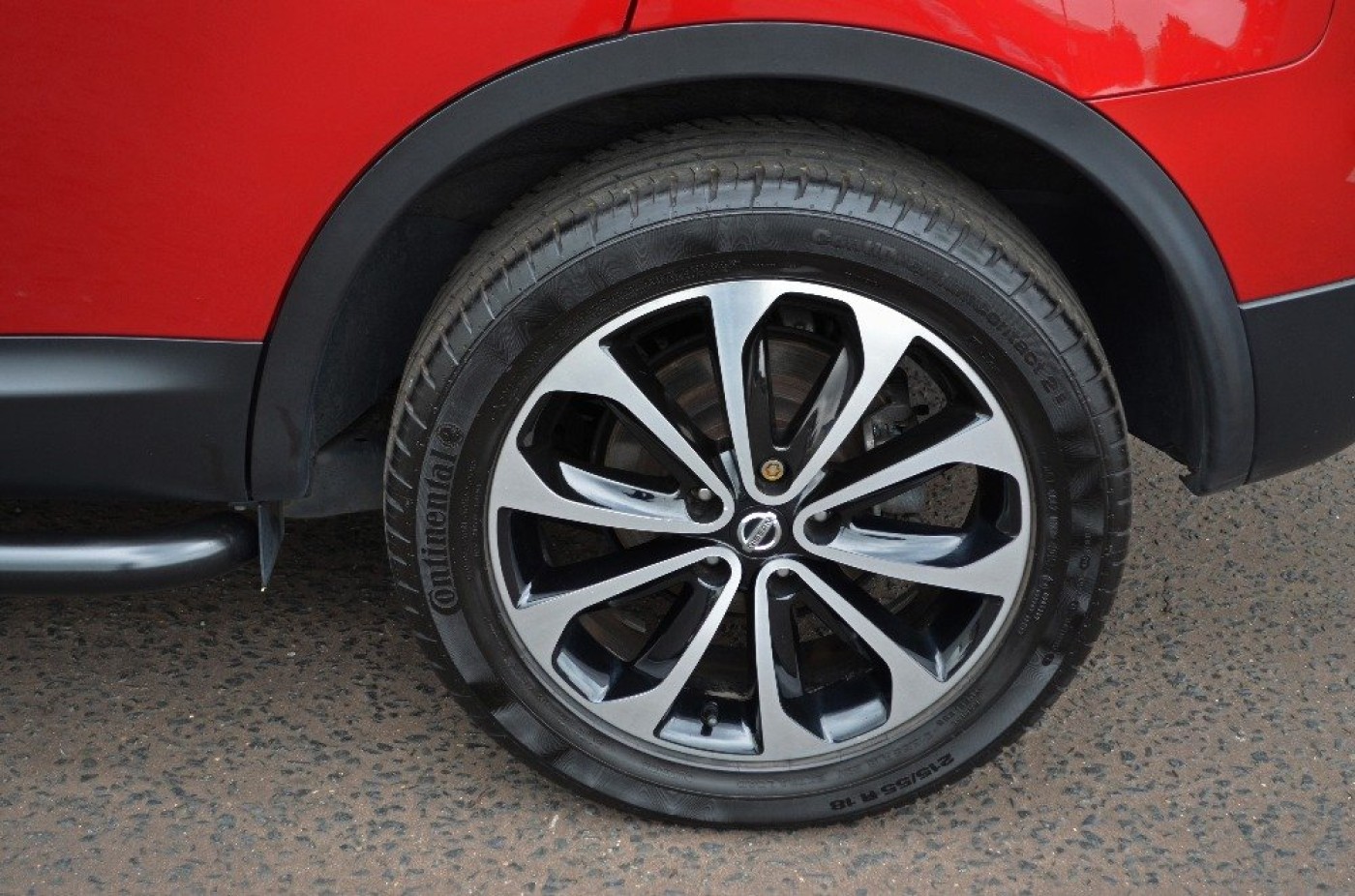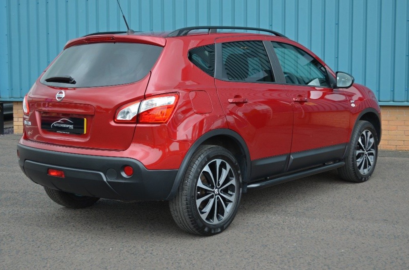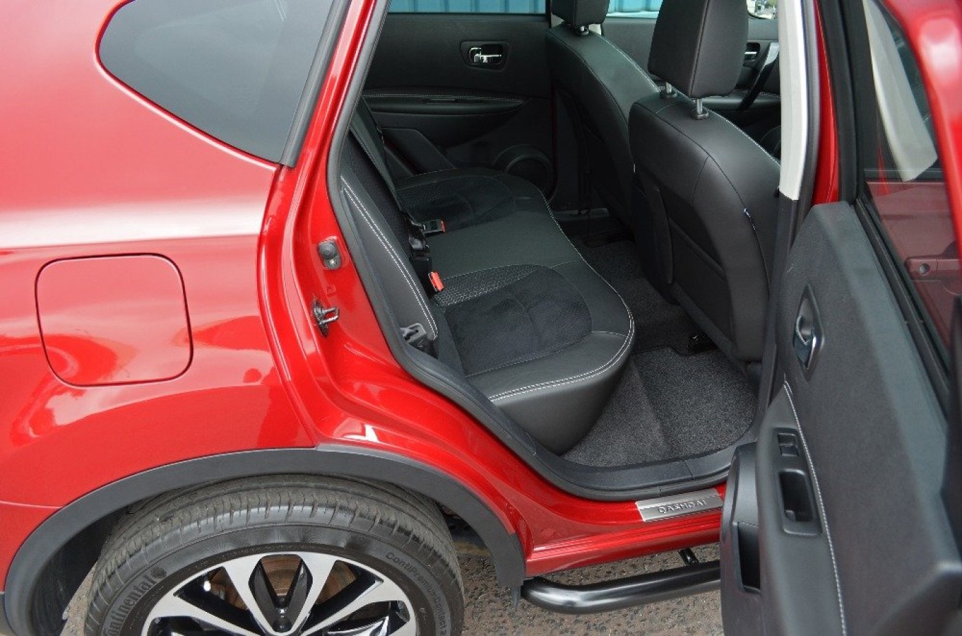 Upgrades - Metallic Paint, Standard Features - Nissan Connect, Panoramic Glass Roof, Cruise Control with Speed Limiter, Dual Zone Climate Control, Ultrasonic Rear Park System, Rear, Front and Passenger Side View Cameras, Nissan Around View Monitor, 18in (Onyx) Alloy Wheels, Bluetooth Integration, Front and Rear Power Windows, Partial Leather Seat Trim, Radio/CD Player with USB Input, Around, Rain-Sensing Wipers, Rear Privacy Glass, Ultrasonic Alarm System. 5 seats, Red.