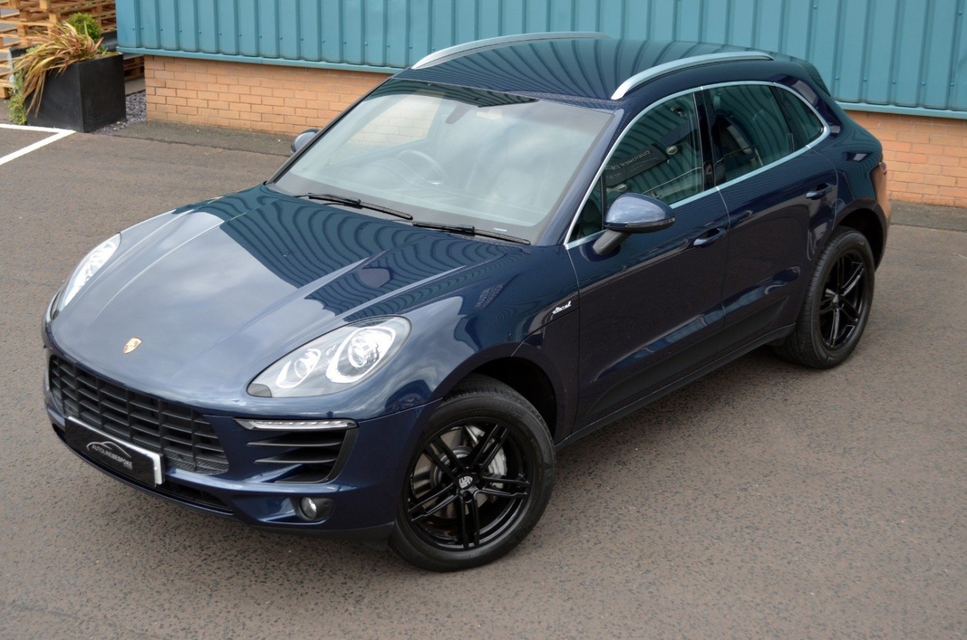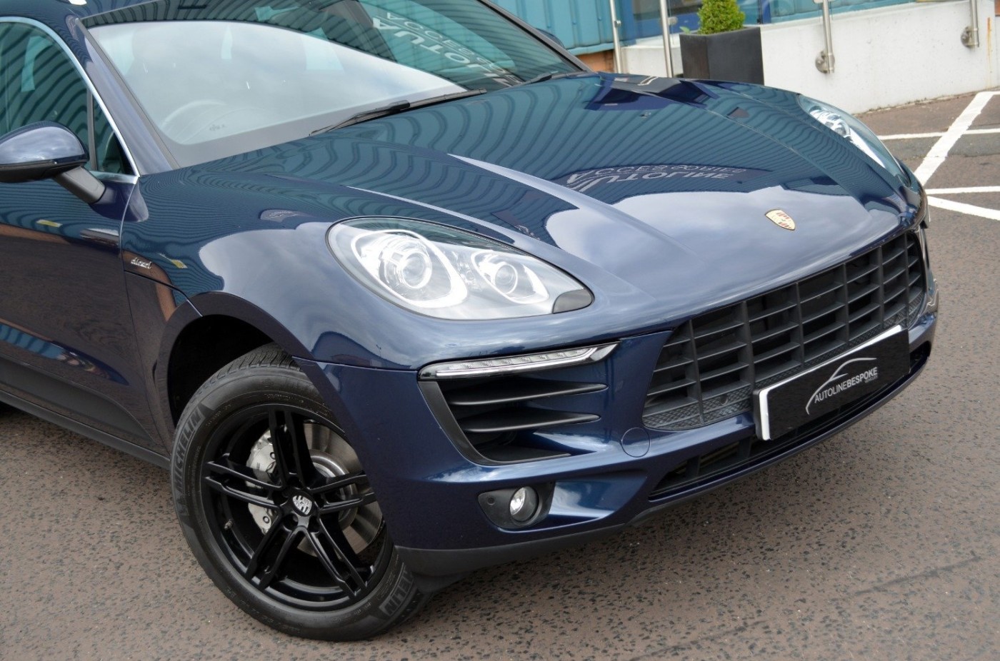 Upgrades - Heated Front Seats, Dark Blue Metallic Paint, Headlight Cleaning System, Roof Rails in Aluminium, Reversing Camera incl. ParkAssist Front and Rear, Comfort Seats with Memory Package, Alloy Wheels-19in Macan Turbo.