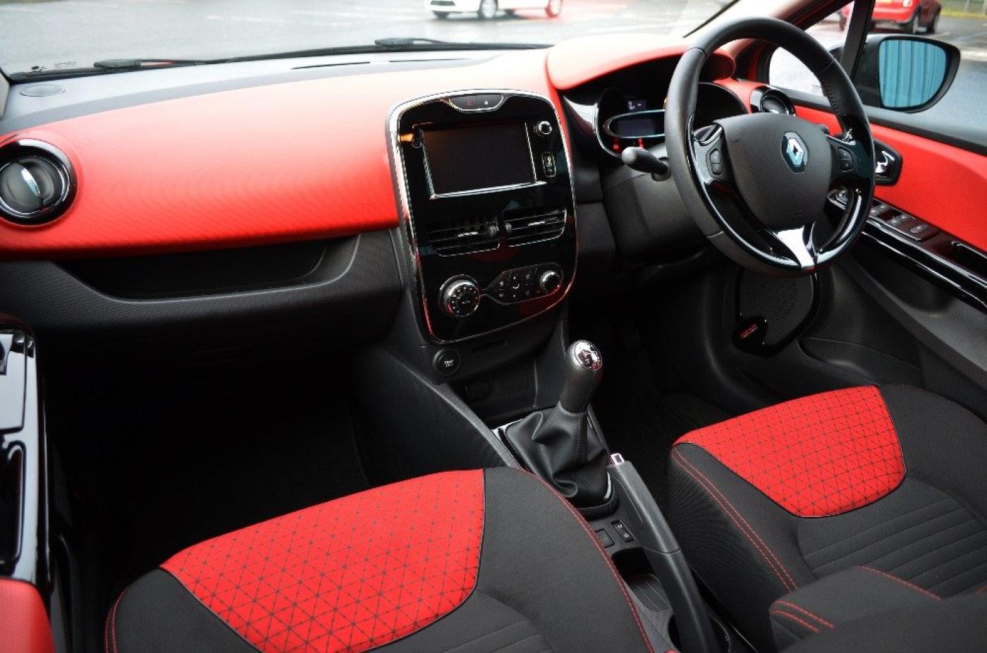 Upgrades - Flame Red Metallic Paint, Standard Features - Renault MediaNav , Navteq Satellite Navigation, Auto Climate Control, 7in Touch Screen, Start/Stop Function, Cruise Control and Speed Limiter, Body Colour Rear Parking Sensors, Automatic Front Wipers, Hill Start Assist, Electric Windows - Front and Rear with Anti-Pinch Function, Bluetooth, Handsfree Keycard Entry with Push Button Start/Stop, 4 x 20W Arkamys Radio, USB and Handsfree Technology and Renault Bass Reflex Sound System, 17in Desire Alloy Wheels with Black Inserts. 5 seats, Red